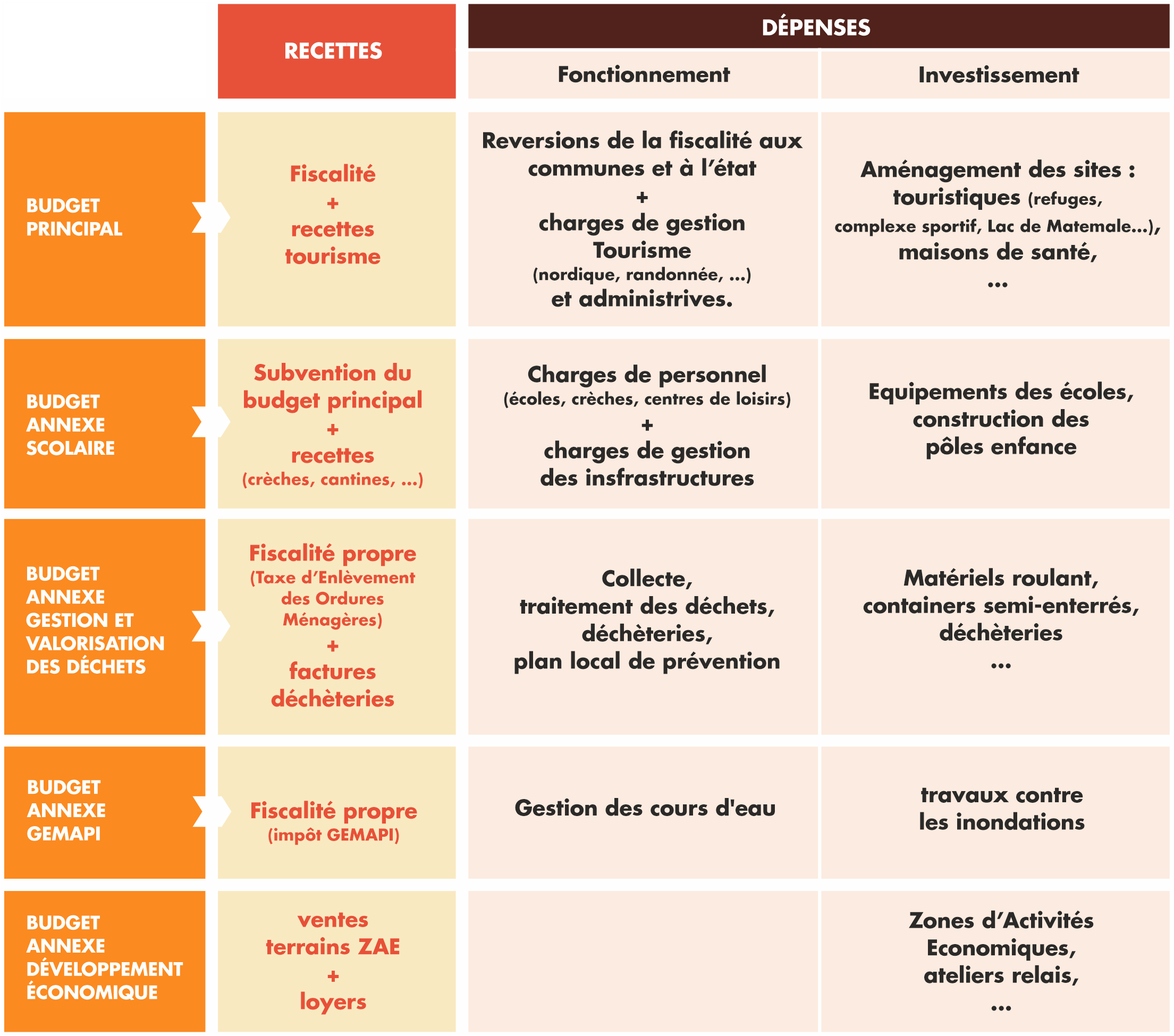 Notre collectivité regroupe ses budgets dans un analytique par pôle de compétences (administratif / Enfance, Jeunesse, Santé & Social / Environnement, Infrastructures & Bâtiments / Développement & Tourisme) c’est-à-dire par grandes politiques publiques.