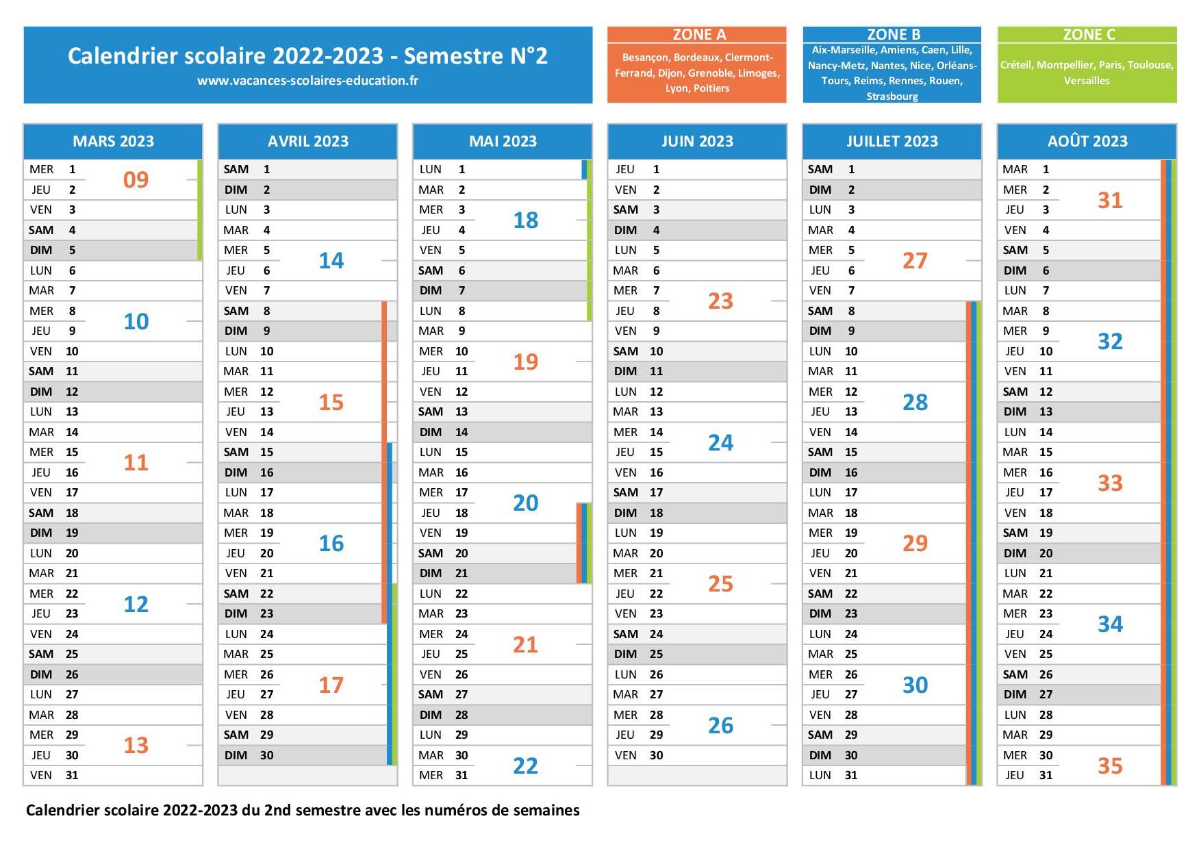 Ce calendrier n'inclut pas les dates de fin de session des examens scolaires.